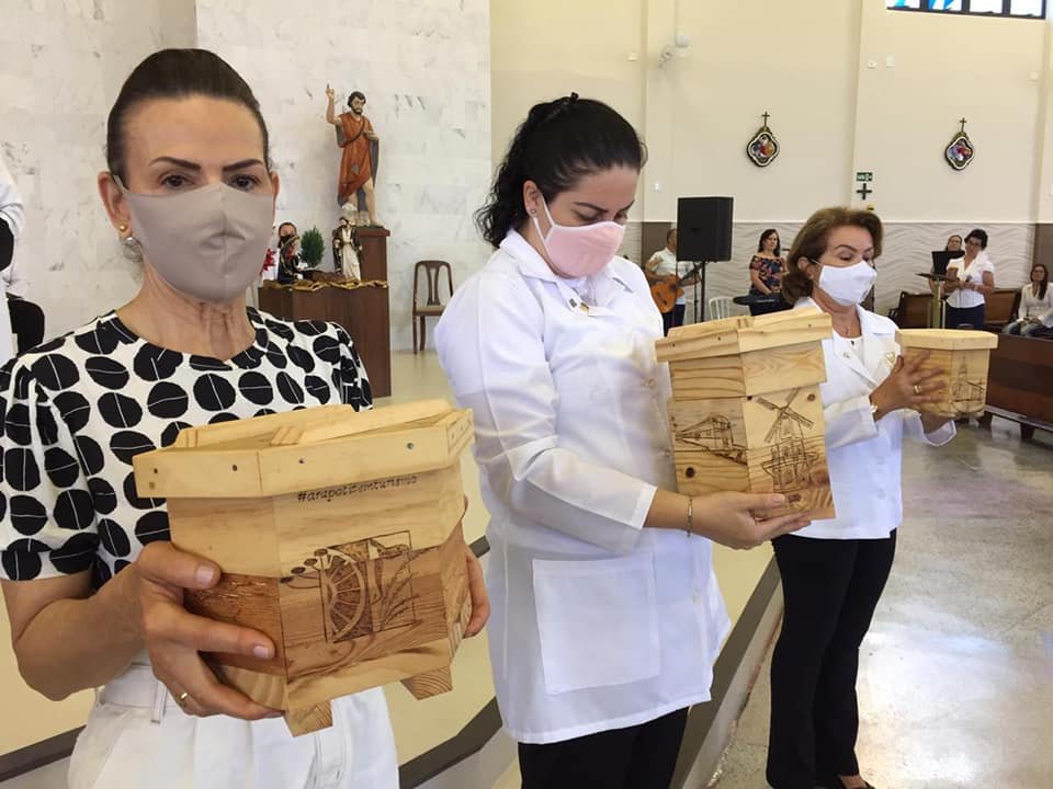 Ótima opção para presente em todas as ocasiões. Interessados nas caixas com ou sem abelhas, Escritório Paróquia São João Batista de Arapoti (43) 35571207.