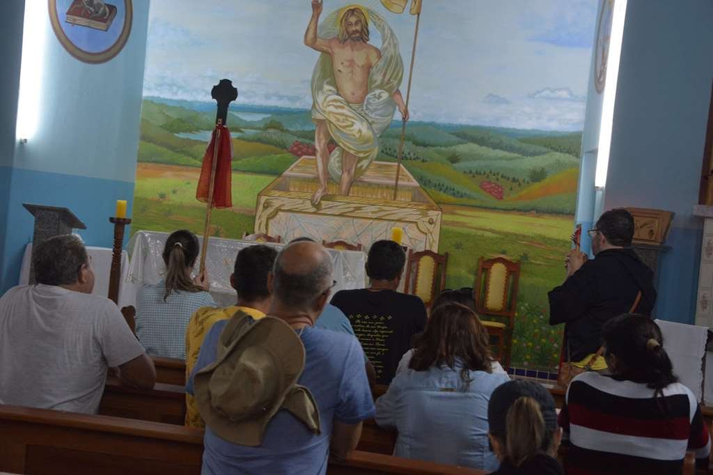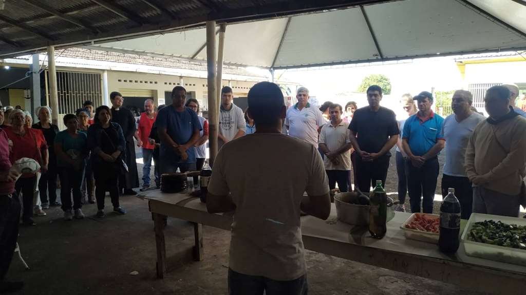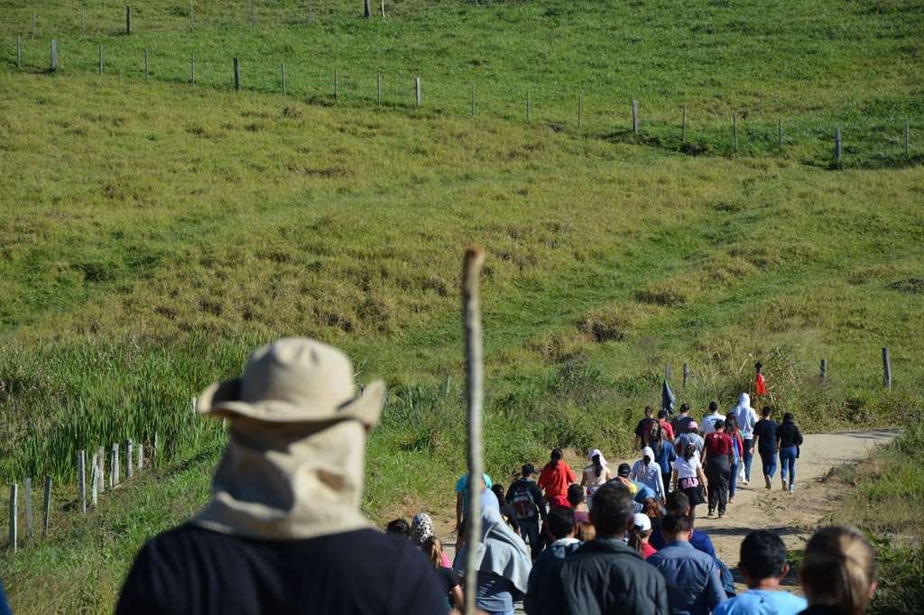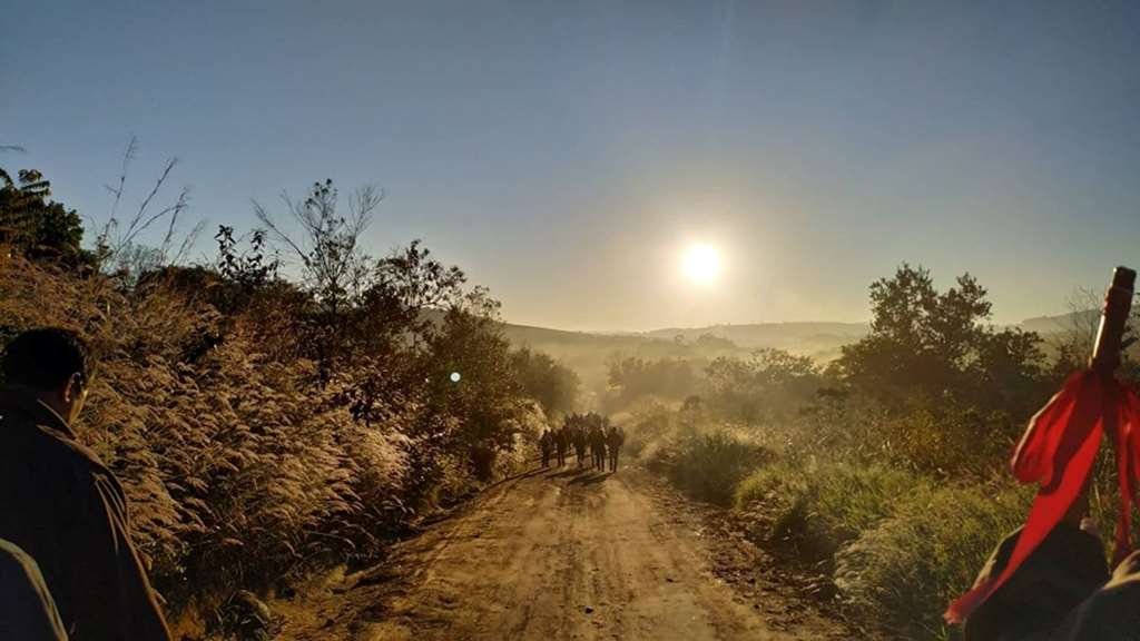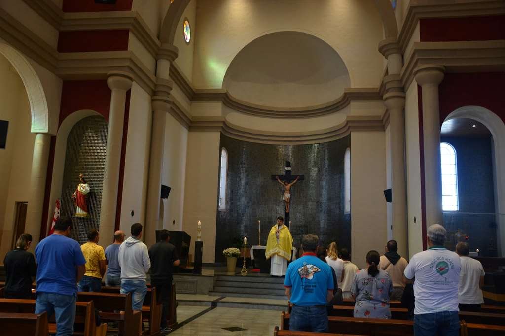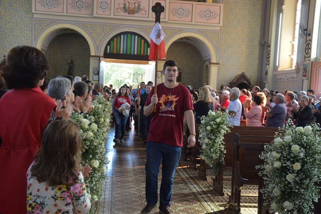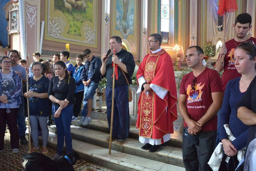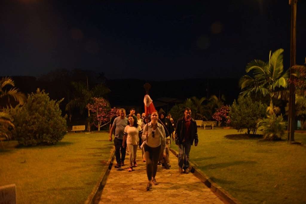 Em seguida foram acolhidos pelo Reitor do Santuário padre Vagner que ofereceu almoço para o grupo de peregrinos e após o almoço seguiram em caminhada até o Bairro do Matão, onde participaram da Santa Missa presidida pelo nosso Reitor padre Claudinei Antônio que também estava na caminhada, lá também jantaram e pernoitaram.