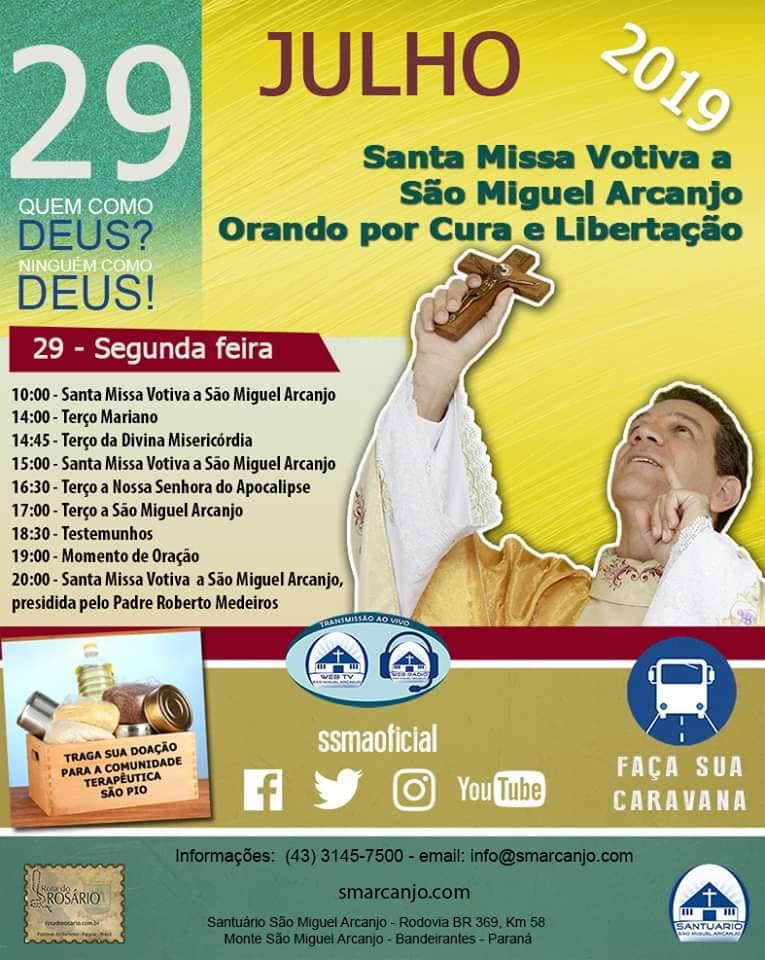 Em Bandeirantes a Santa Missa em louvor a São Miguel dia 29, segunda-feira.