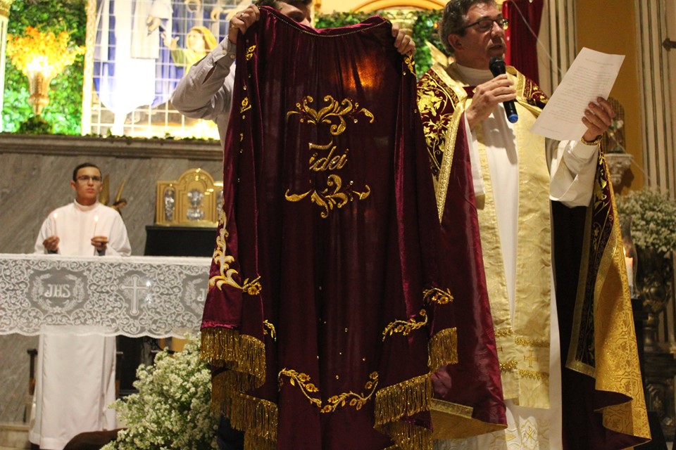 Todos os anos o manto é doado por uma pessoa que recebeu uma graça do Senhor Bom Jesus, em 2019 o doador foi Jonathas Garanhani, que levou o belíssimo manto com muita emoção.