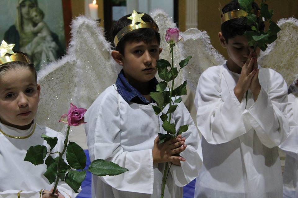 As crianças da participantes da Missa fizeram parte de um momento único na celebração, que foi o tributo à Virgem Maria, um manto cobriu todos os presentes que se sentiram tocados pela graças maternal de Maria.