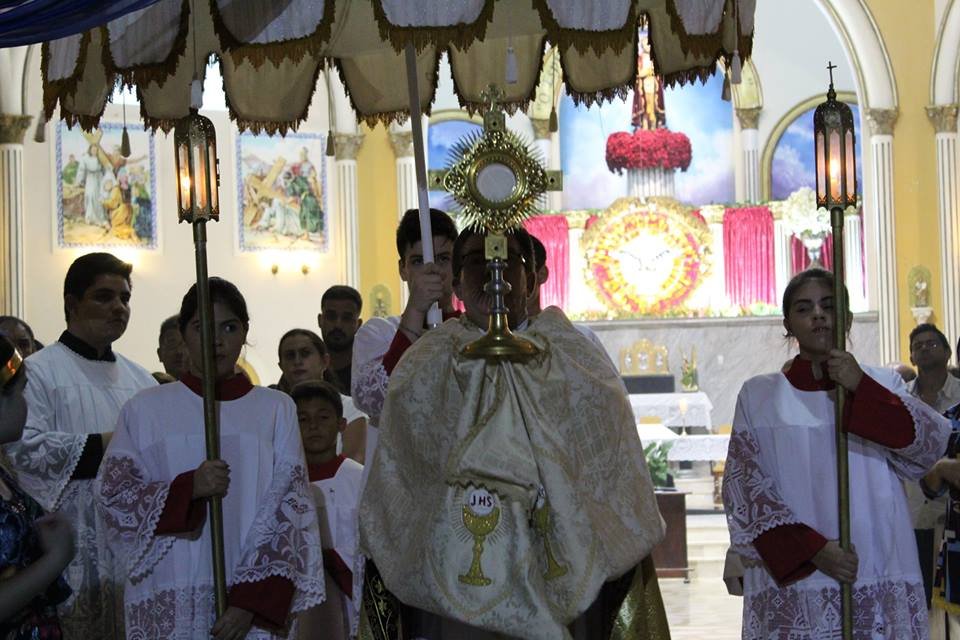 Diante do Santíssimo a Comunidade entoou o cântico do Te Deum Laudamus, um canto de louvor e agradecimento a Deus por tantas graças e que lucra indulgência plenária neste dia.