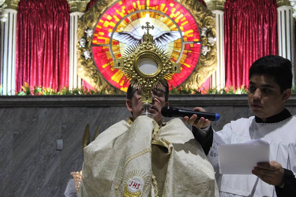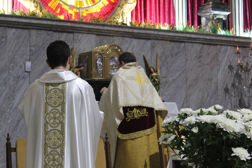 Após a Santa Missa, Frei Carlos Gonzaga Vieira,reitor do Santuário deu inicio à adoração ao Santíssimo Sacramento em ação de graças pelo ano transcorrido.