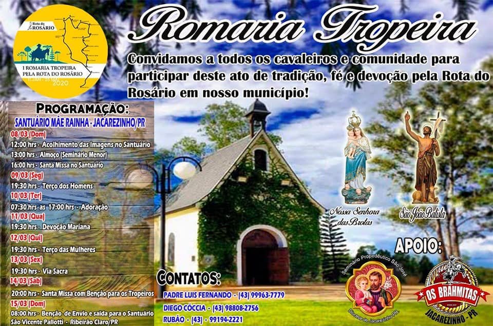 É uma honra para nós recebermos a Romaria em nossa cidade. Estamos preparando uma semana repleta de fé, venha participar conosco entre os dias 8 a 15 de março em Jacarezinho!” Por Diego Cocia