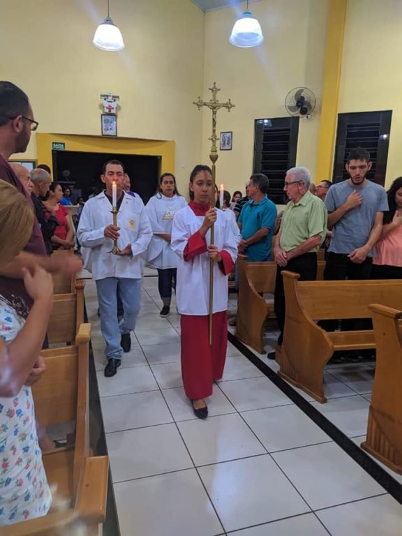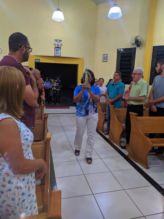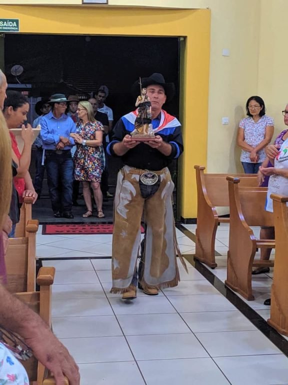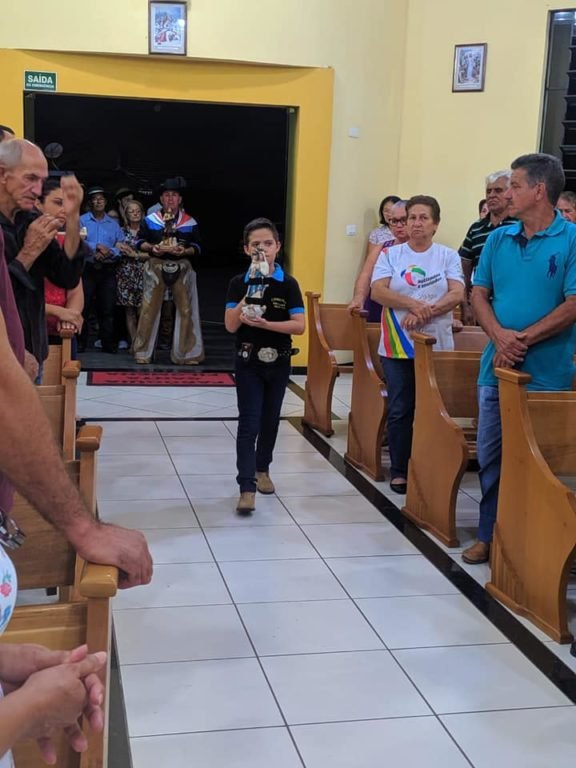“Hoje a convite do Zé Sapateiro, estivemos na Paróquia Santa Filomena na Vila Claro em Santo Antônio da Platina, em uma Santa Missa presidida pelo Pároco e Reitor Pe Rosinei, onde as imagens de Nossa Senhora das Brotas e São Batista estão passando a caminho de Jacarezinho.