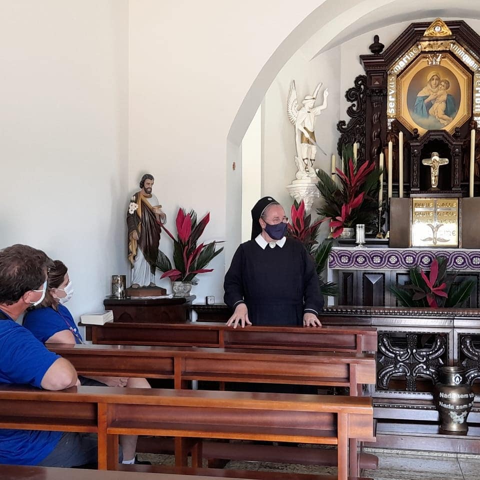Na tarde desta quarta-feira no Santuário da Mãe Rainha a Irmã Vilma Maria, recebeu a visita técnica da Agência Domus de Turismo, representada de senhor Pedro Kemp, onde conheceram e rezaram no santuário.
